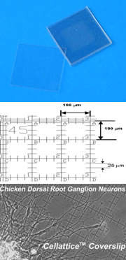 Cellattice™塑料培養(yǎng)片,其上往往刻有字母等做記號(micro-ruled coverslips),塑料材質(zhì),具有適宜細(xì)胞培養(yǎng)的表面。此類產(chǎn)品主要滿足以下實驗?zāi)康模?/span>