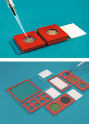Rnase free,該產(chǎn)品與蓋塑片連在一起,每個小室上方的蓋片有兩個液體注入孔,帶粘合劑型,無需處理打開即可使用。推薦用于蛋白質(zhì)和核酸檢測,較大或者多樣品雜交實驗,或者玻片(膜)上基因芯片雜交實驗。如果用Cy5或者Alexa Fluor 647直接標(biāo)記DNA探針,請參考本公司提供的“熒光友好型”雜交池。