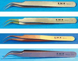 EMS鑷子進(jìn)入中國(guó)市場(chǎng)十年來(lái),逐漸得到了實(shí)驗(yàn)室科研工作者的接納和認(rèn)可,并獲得了不少贊譽(yù)。EMS 鑷子瑞士制造,材料選擇無(wú)磁性、抗酸蝕不銹鋼(特別材質(zhì)除外),防炫目的緞面設(shè)計(jì),高品質(zhì)和革新是EMS鑷子的一直追求!對(duì)于電鏡工作者,EMS公司特別推薦style 3,style 3c,style 4,style 5,style 51s,style 5b,均可以用于電鏡微柵的精確取放。