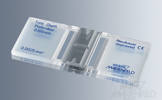 德國(guó)原裝進(jìn)口Marienfeld血球計(jì)數(shù)板,改進(jìn)牛鮑型(Neubauer-improved),由特殊光學(xué)玻璃制成,每板有2個(gè)計(jì)數(shù)池,H型凹槽,帶有歐盟CE標(biāo)識(shí)。Bright-Line(0650030)為金屬亮線型,Dark-Line(0650010)為蝕刻暗線型。本產(chǎn)品有特殊設(shè)計(jì)的V型槽,可引導(dǎo)液體的加入,防溢流現(xiàn)象發(fā)生。計(jì)數(shù)池深度為0.1mm,適用于紅、白血球、血小板、細(xì)胞。