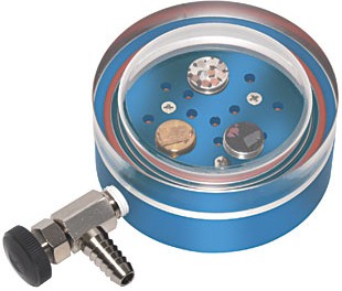 理想的運(yùn)輸或保存SEM、TEM、FIB、AFM樣本的微型干燥器,可以保存12個(gè)標(biāo)準(zhǔn)的ø 12.7mm樣本臺(tái)或者2個(gè)ø 25mm或1個(gè)ø 50mm的樣本臺(tái),樣本高度不能超過10mm,保存狀態(tài)為真空。底座材料為陽極化處理過的鋁,蓋子為10mm厚度的透明工程塑料,便于觀察??傮w尺寸為ø76 x 35mm,美國(guó)制造。密封的O型圈可以適應(yīng)10-3 mbar的真空,且保持?jǐn)?shù)月之久。