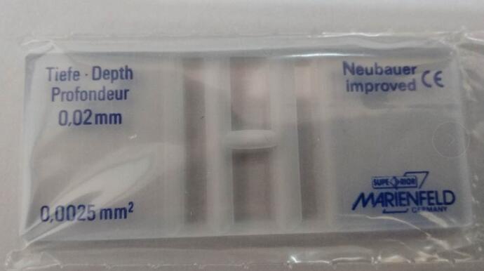 德國原裝進(jìn)口Marienfeld細(xì)菌計(jì)數(shù)板,改進(jìn)牛鮑型(Neubauer-improved),Petroff Hausser Counting Chamber,由特殊光學(xué)玻璃制成。每板有2個(gè)計(jì)數(shù)池,計(jì)數(shù)池深度為0.02mm,深度值誤差范圍1微米。因?yàn)槭艿缴疃认拗?,一般提供的產(chǎn)品是暗線型(線條蝕刻出來的)。用于細(xì)菌或者用于未稀釋標(biāo)本的精子計(jì)數(shù),帶有CE標(biāo)識,滿足98/79EC條款,可以用于IVD。每套里面1個(gè)板,2個(gè)蓋片。